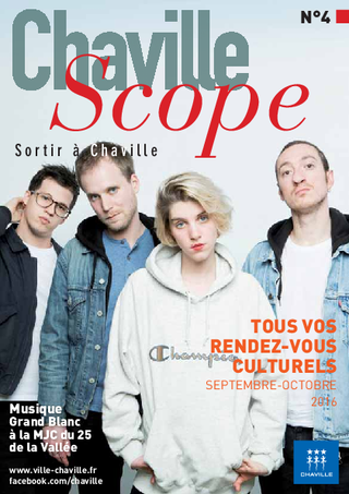 Chaville Scope Septembre-Octobre 2016 (n°4) 1 document Publié le 01 septembre 2016 Retrouvez tous vos rendez-vous culturels : théâtre, musique, danse, cinéma, conférences, littérature, spectacle jeune public, expositions... Liste des documents Chaville Scope Septembre-Octobre 2016 (.PDF, 323Ko) Télécharger Feuilleter Précédent Retour à la liste Suivant
