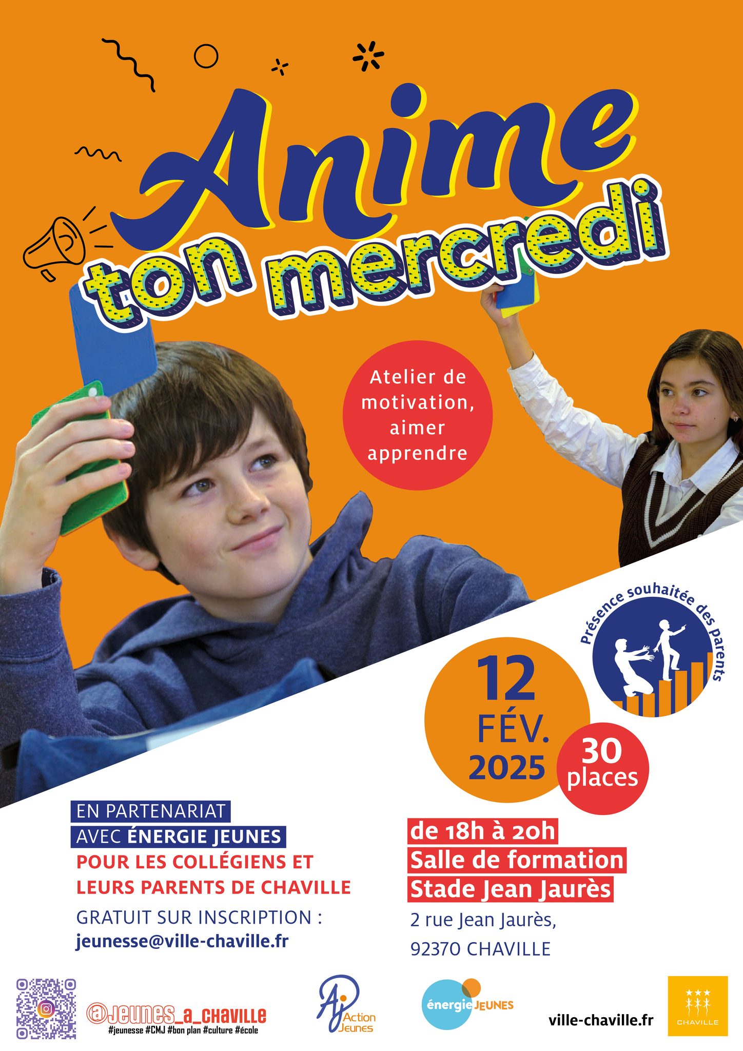 Dans le dispositif "Anime ton mercredi", le service Jeunesse de la Ville de Chaville propose en partenariat avec l'association Énergie Jeune, un atelier sur "la motivation et aimer apprendre". Il permettra aux collégiens de :