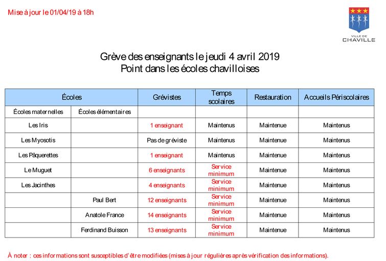 Compte tenu du nombre importants de grévistes dans certains établissements scolaires, il est demandé aux parents susceptibles de trouver une solution de garde de ne pas mettre leurs enfants à l'école ce jeudi 4 avril, dans la mesure du possible.