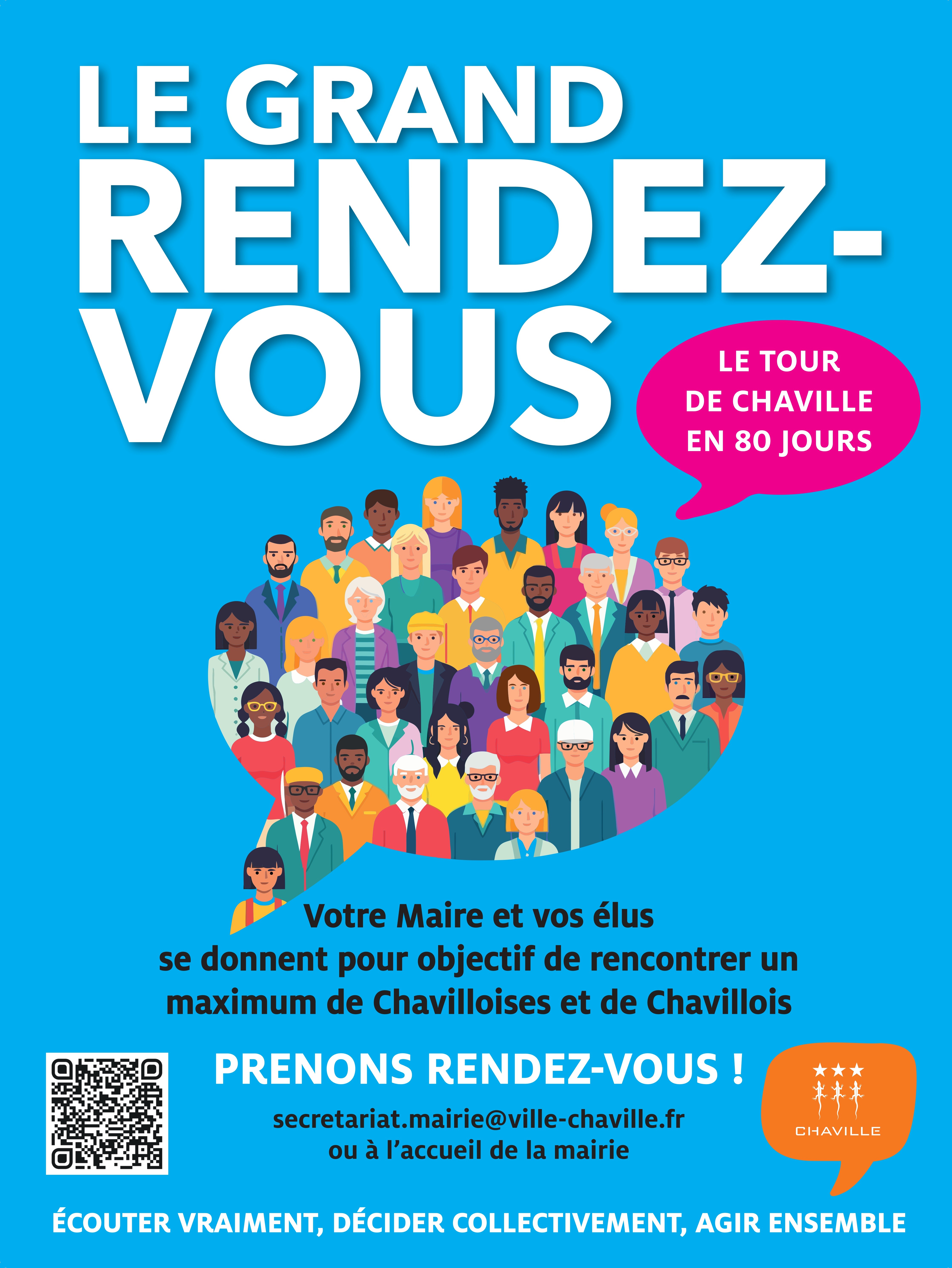 La consultation des Chavilloises et des Chavillois constitue l’un de nos premiers axes de travail. En effet, qui d’autre qu’eux connaît mieux leur quartier, leurs usages et leur quotidien ? C’est tout l’enjeu du Grand Rendez-vous qui, pendant 80 jours, va permettre à chacune et chacun de s’exprimer ; de recueillir les attentes, propositions mais aussi insatisfactions des habitants et d’enrichir l’action municipale.