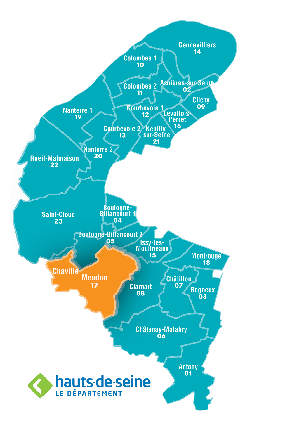 Le nombre des cantons est passé de 46 à 23 dans les Hauts-de-Seine. Chaville appartient au canton n°17, qui regroupe les communes de Meudon et Chaville.